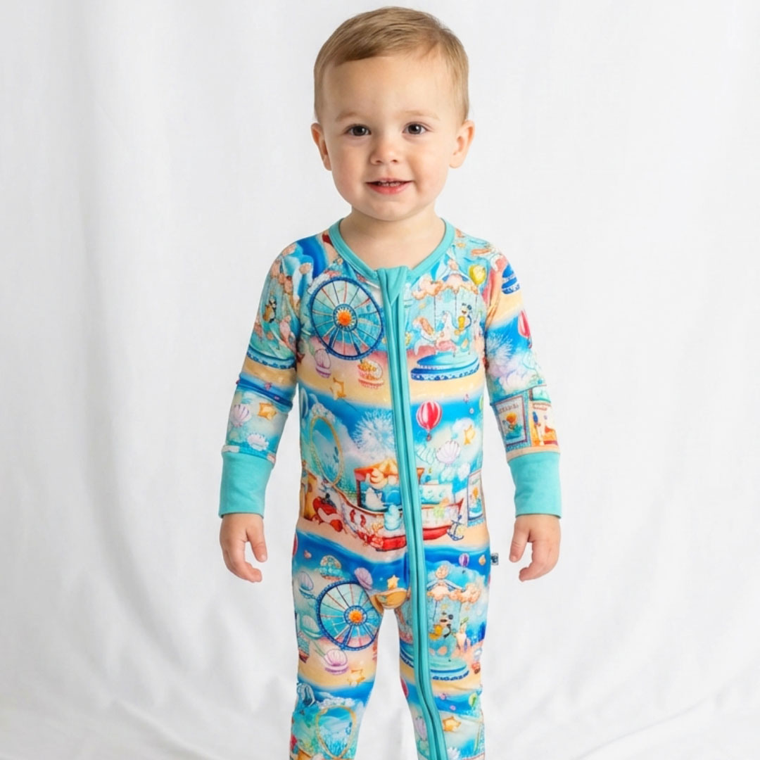 Explore the fun of an underwater carnival with "Riding the Tides™" and experience ultimate comfort with this bamboo convertible zippy featuring our hand-drawn carnival-inspired print. When your children sleep better, YOU SLEEP BETTER!