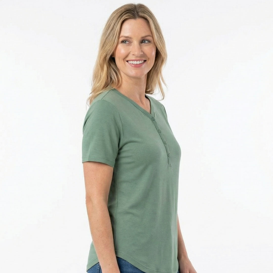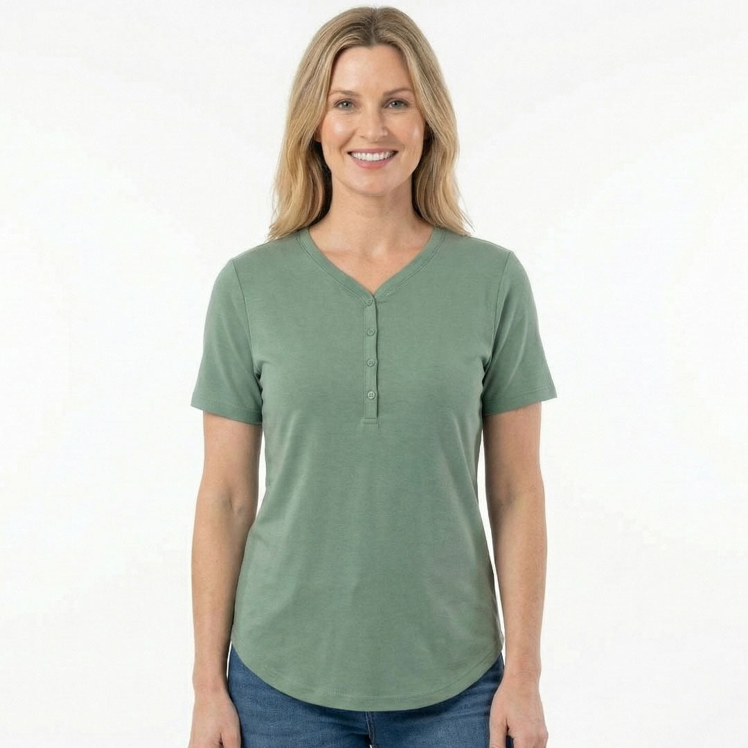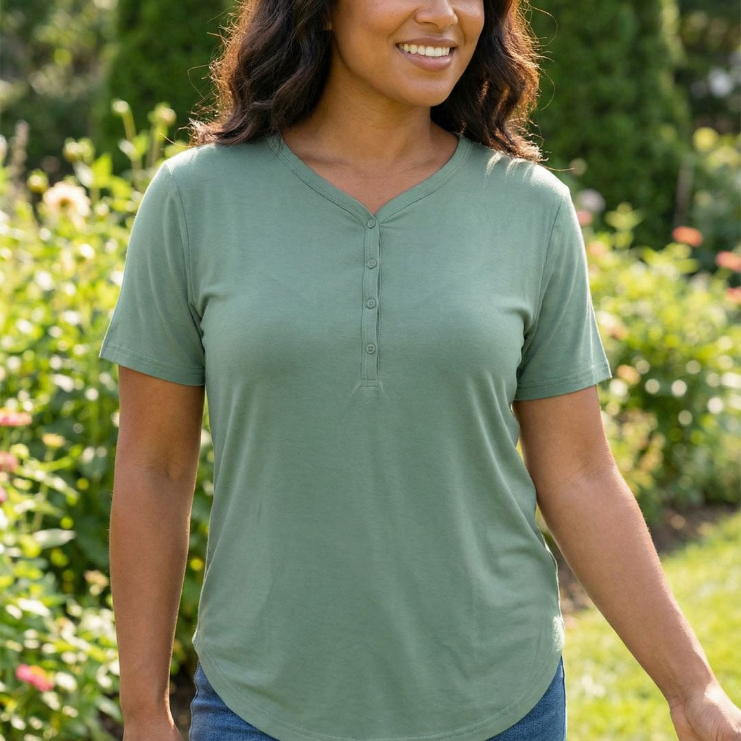 Made from luxuriously 230 GSM soft bamboo fabric, this women’s tee combines effortless style with practical comfort. Gentle on sensitive skin and breathable enough for all-day wear, it features discreet snap buttons for easy nursing access or everyday versatility. Whether you’re feeding your little one or simply craving a relaxed, flattering fit, this top moves with you keeping you cool, comfortable, and confidently chic.