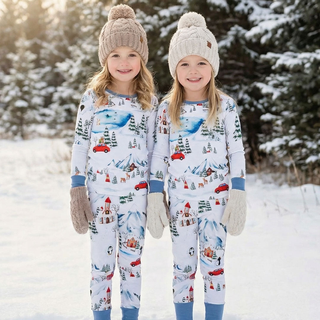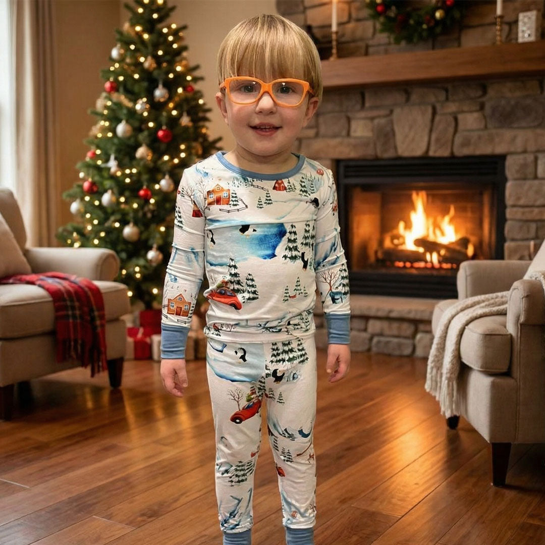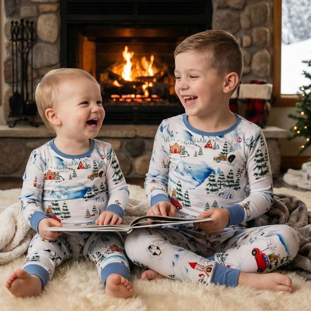 Snowhere I'd Rather Be™ than in the mountains on a beautiful winter day. After a long day playing in the snow, experience ultimate comfort with this 2-piece bamboo pajama set featuring our hand-drawn print: